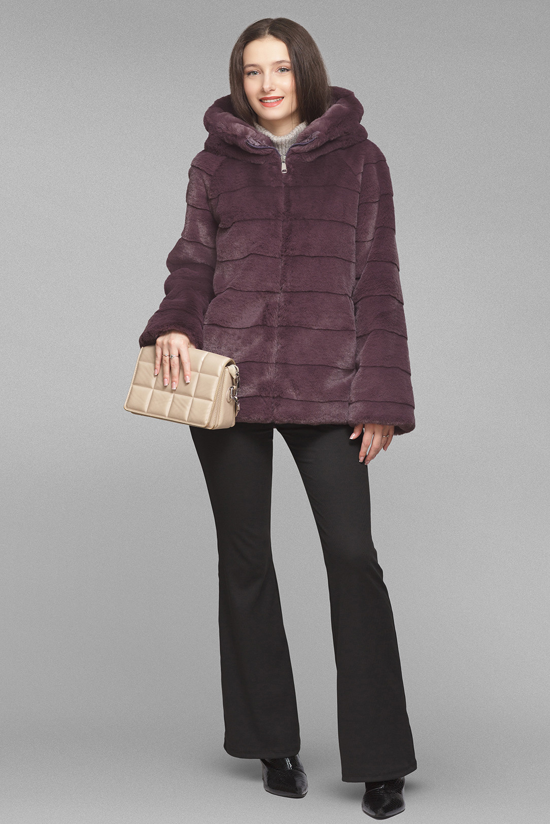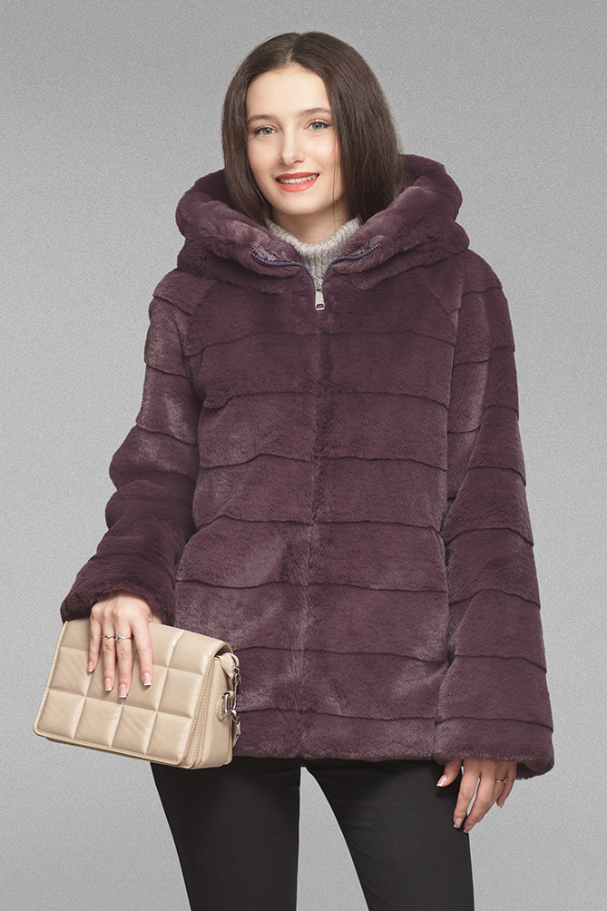 Меховая женская куртка прямого силуэта с рукавами реглан и уютным втачным капюшоном. Детали изделия: застёжка на молнию, боковые прорезные карманы, утеплённая подкладка.
